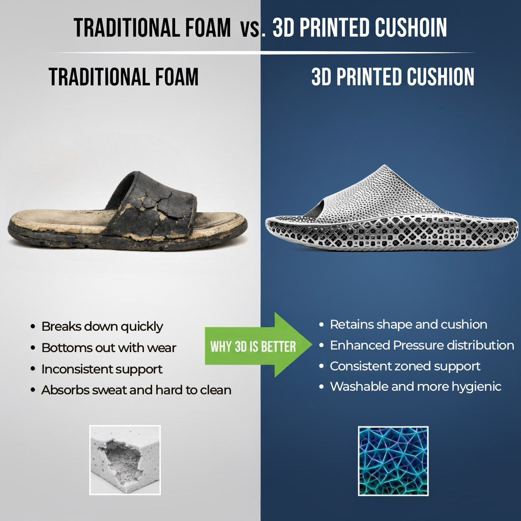 3D cushion designed to ease strain on heels, arches, and joints.